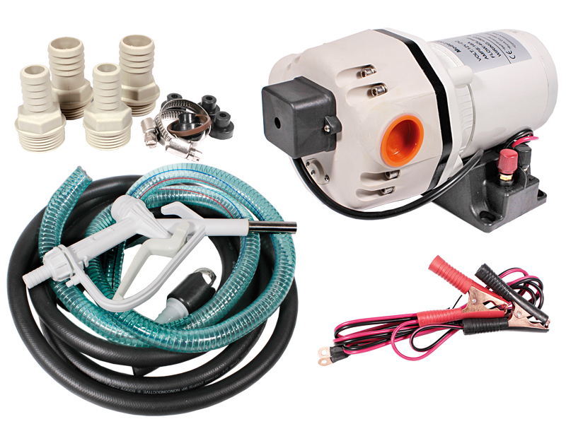 AD-Blue ureatäyttöihin, sis letkut ja sovittimet:: 19mm (3/4″) ja 25mm (1″) – täyttöpistooli – johdot latauspuristimilla – 5 kammioinen kalvopumppu 24v (TPV), kestomagnetoitu DC-moottori, runko lasikuituvahvisteista nylonia, Viton takaiskuventtiilit, jatkuvaan käyttöön, itsetuulettuva, IP54, CE. liitännät: 1″, 8A @1.7Bar (25Psi), sulake 24A, max 2.75Bar, pumpattavan nesteen lämpötila +5°C … +60°C, 5.5kg